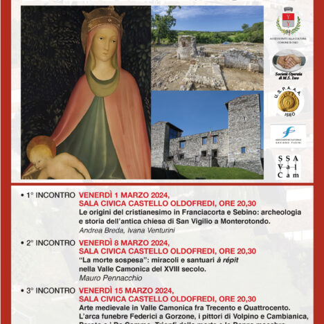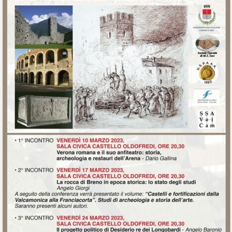 Tornano le attese serate di storia e archeologia alla Sala Civica del Castello Oldofredi a Iseo organizzate dall’associazione storico-archeologica U.S.P.A.A.A. Gli incontri saranno tre durante il mese di Marzo: